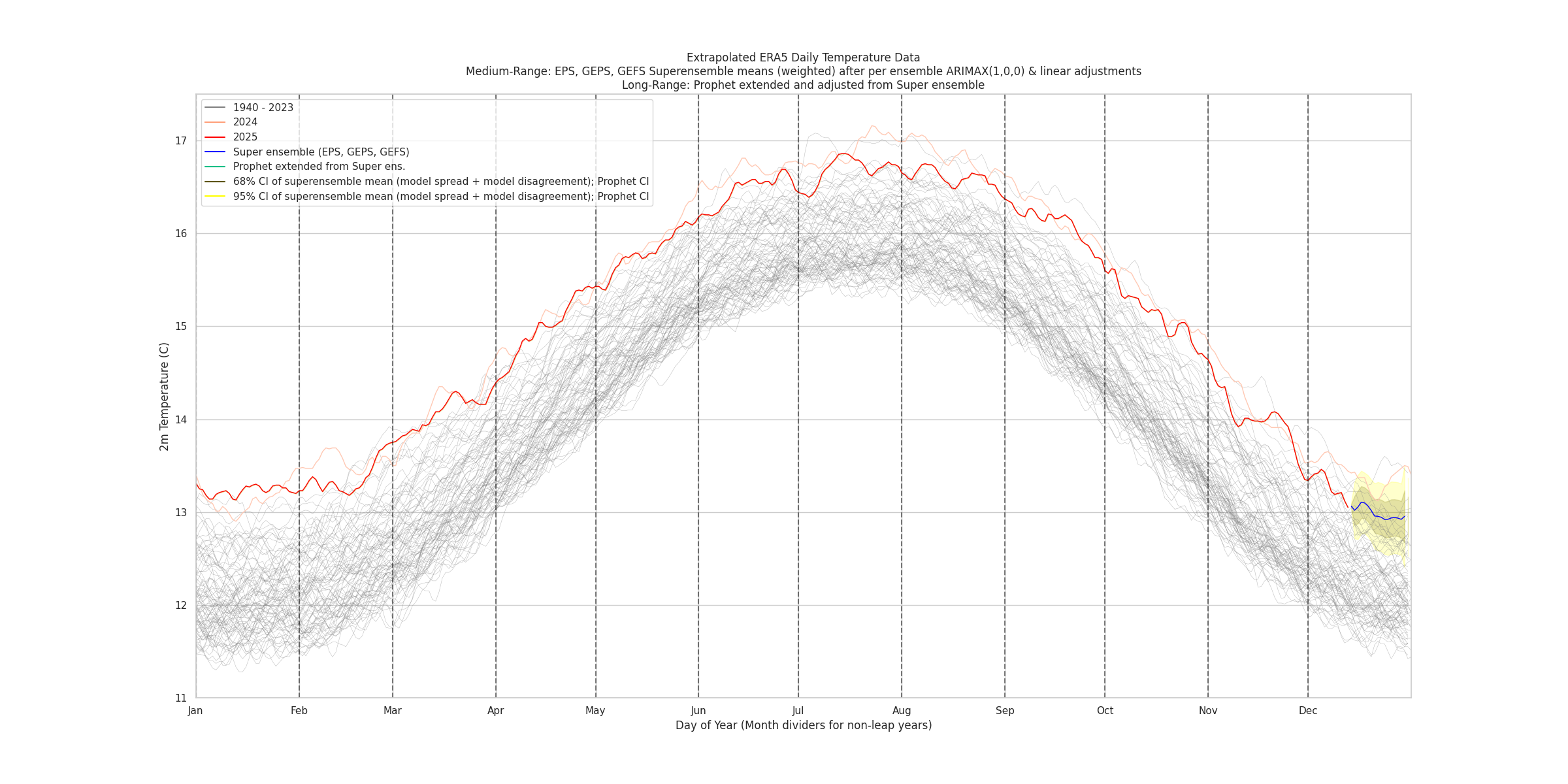 So far it seems I have been more aggressive than last month for the last week, but still not aggressive enough in retrospect perhaps... i.e. the superensemble+prophet has had center point predictions in the 1.01-1.10 range since December 3, while the naive statistical model has been in the 1.08-1.18 range until today when it dropped down to 1.05 C with the latest ERA5 point.