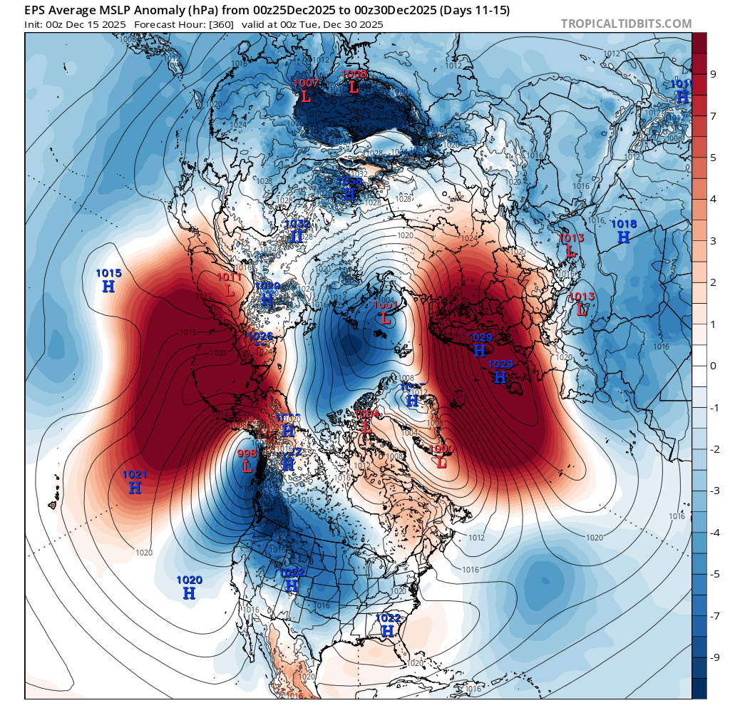 Further speculative still.. even in this scenario the deterministic ECMWF shows a low offshore the west coast that might cross into North America before the end of the year to become a significant winter storm. These transient systems are the factors I think are the hardest to predict so it shouldn't be taken as a serious scenario so far out...