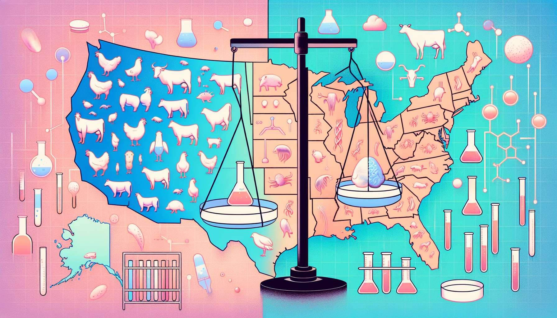 In what year will the number of US states that ban animal meat surpass the number that ban lab meat