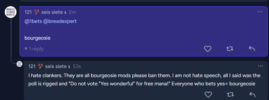 @mods ban the bourgeosie clankers. @1bets @breadexpert