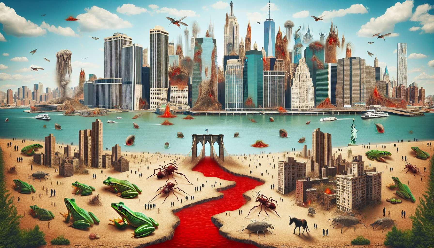 The translation isn't clear if the infestation is FLIES or WILD ANIMALS so I'll have to make a judgement call. Any animal involved in another answer like FROG will not count. Animals already found in NYC like cockroaches, rats or pigeons will not count unless there is an unusually high amount that is reported on.